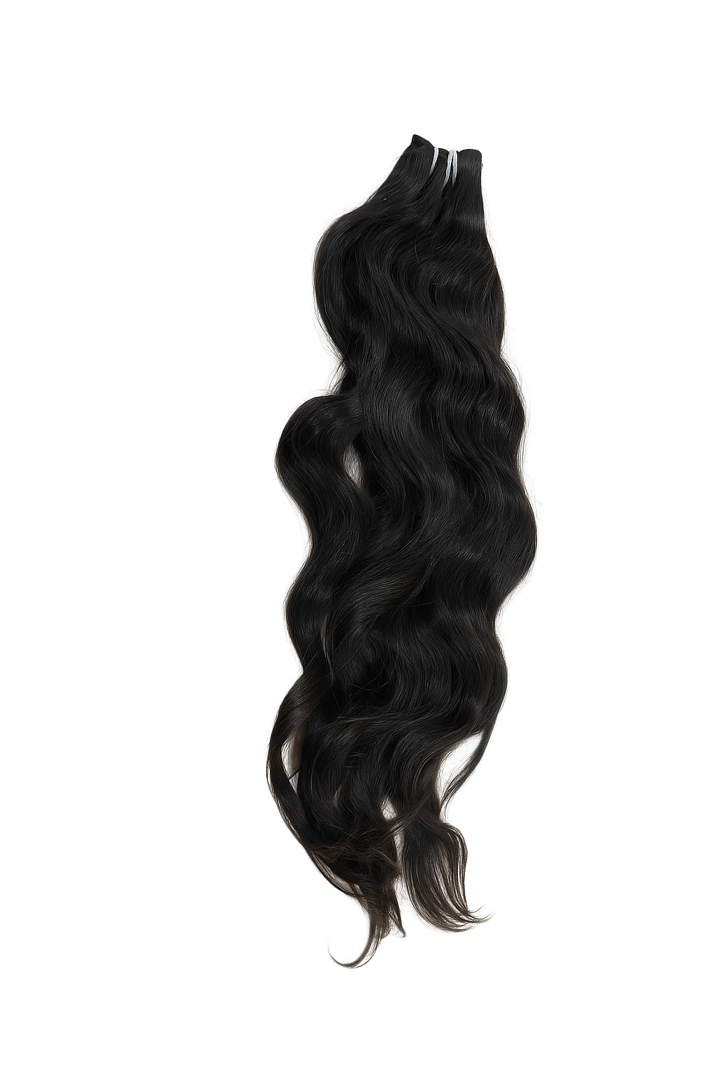 Straight weft, can be brushed and straightened. Black/Dark Brow